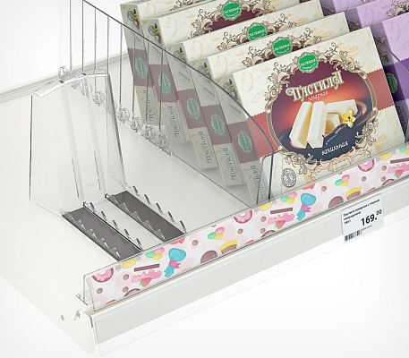 Благодаря наличию Т-профиля может использоваться для крепления разделителей и толкателей помогая поддерживать порядок на полке.