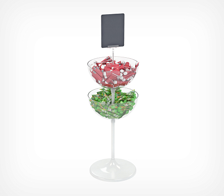 Напольный дисплей двойной 24/24 литра состоит из двух чаш объемом 24 литра. Благодаря этому дисплей позволяет делать выкладку сразу двух товаров и ещё более эффективно использовать торговую площадь, увеличивая продажи.