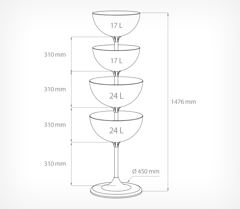 Напольный дисплей с четырьмя чашами 17/17/24/24 литра